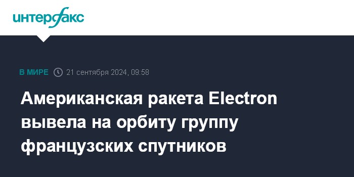 Москва. 21 сентября. INTERFAX.RU - Американская ракета Electron, стартовавшая в субботу из Новой Зеландии, успешно вывела на орбиту пять французских интернет-спутников компании Kineis, сообщила разработчик носителя Rocket Lab.