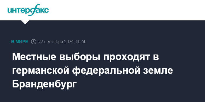 Москва. 22 сентября. INTERFAX.RU - Избирательные участки открылись в 08:00 местного времени (09:00 мск) в воскресенье на местных выборах в федеральной земле Бранденбург в Германии.