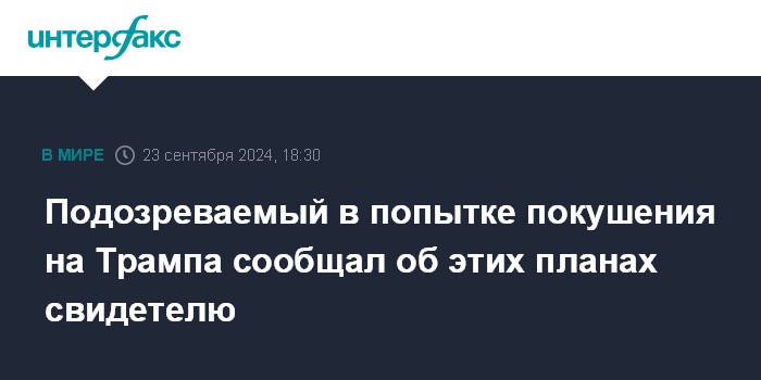 Подозреваемый в попытке покушения на Трампа сообщал об этих планах свидетелю
