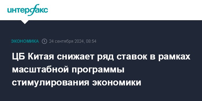 ЦБ Китая снижает ряд ставок в рамках масштабной программы стимулирования экономики