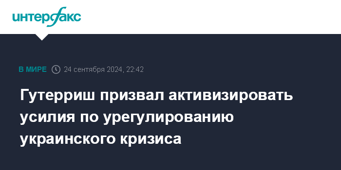 "Давайте активизируем усилия по установлению мира на Украине. Справедливого, всеобъемлющего и устойчивого мира", - заявил во вторник Гутерриш.