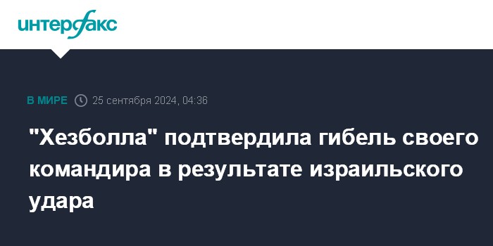 Москва. 25 сентября. INTERFAX.RU - Ливанское шиитское движение "Хезболла" подтвердило гибель одного из своих старших командиров - командующего ракетными силами движения Ибрагима Кубаиси.