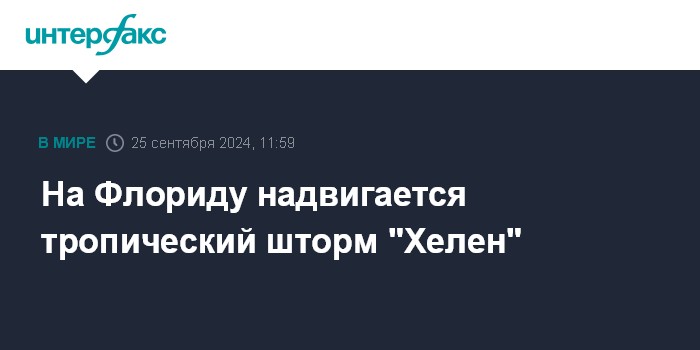 Москва. 25 сентября. INTERFAX.RU - Тропический шторм "Хелен" приближается к побережью американского штата Флорида, сообщает в среду Associated Press.