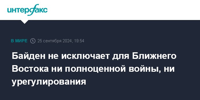 Москва. 25 сентября. INTERFAX.RU - Президент США Джо Байден заявил, что на Ближнем Востоке может начаться полномасштабная война, однако ситуацию все-таки можно изменить дипломатическими методами. Об этом сообщают западные СМИ.