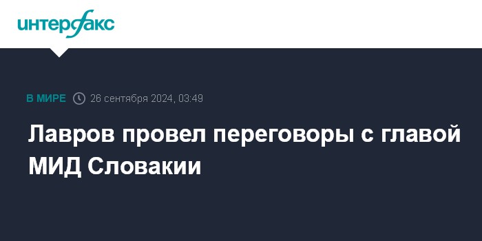 Москва. 26 сентября. INTERFAX.RU - Глава МИД РФ Сергей Лавров встретился с министром иностранных и европейских дел Словакии Юраем Бланаром.