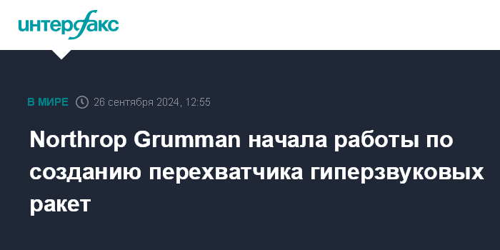 Москва. 26 сентября. INTERFAX.RU - Корпорация Northrop Grumman во взаимодействии с Агентством противоракетной обороны США начинает работы по созданию перехватчика гиперзвуковых ракет, сообщается на ее сайте.