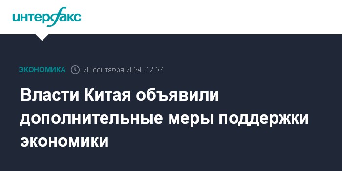 Москва. 26 сентября. INTERFAX.RU - Политбюро Центрального комитета Коммунистической партии Китая (ЦК КПК) пообещало усилить бюджетную поддержку экономики, пишет Financial Times.