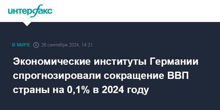 Москва. 26 сентября. INTERFAX.RU - ВВП Германии снизится на 0,1% в 2024 году, прогнозируют ведущие исследовательские институты ФРГ.