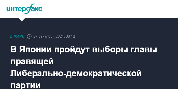 Москва. 27 сентября. INTERFAX.RU - Либерально-демократическая партия (ЛДП) Японии, возглавляющая правящую коалицию, в пятницу проведет выборы нового председателя, который также станет следующим премьер-министром.