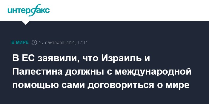 В ЕС заявили, что Израиль и Палестина должны с международной помощью сами договориться о мире