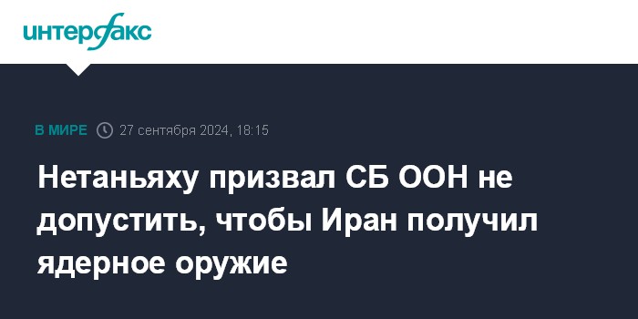 Москва. 27 сентября. INTERFAX.RU - Премьер-министр Израиля Биньямин Нетаньяху, выступая на Генассамблее ООН, обратился к Совету безопасности Организации с призывом вновь ввести санкции против Ирана и не допустить развития иранской ядерной программы.