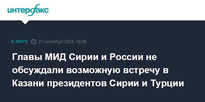 Главы МИД Сирии и России не обсуждали возможную встречу в Казани президентов Сирии и Турции
