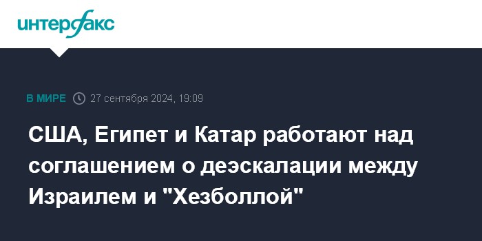 США, Египет и Катар работают над соглашением о деэскалации между Израилем и "Хезболлой"