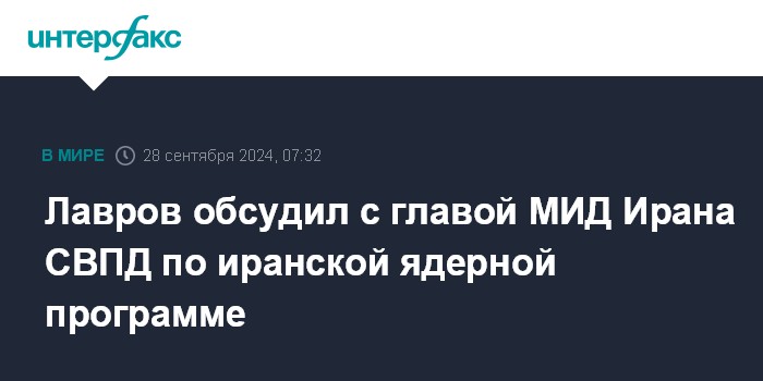 Москва. 28 сентября. INTERFAX.RU - Глава МИД РФ Сергей Лавров обсудил с министром иностранных дел Ирана Аббасом Аракчи "на полях" 79-й сессии ГА ООН палестино-израильский конфликт, СВПД по иранской ядерной программе, ситуацию в Закавказье.