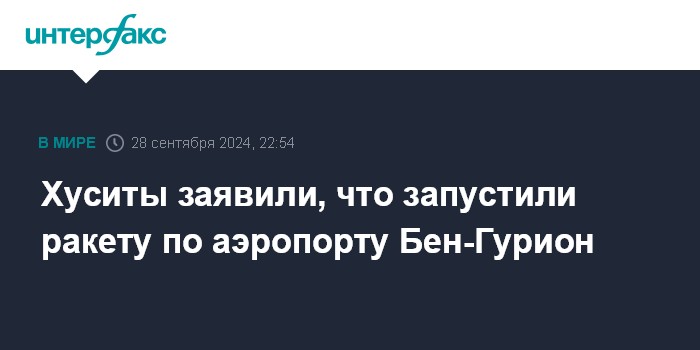 Хуситы заявили, что запустили ракету по аэропорту Бен-Гурион