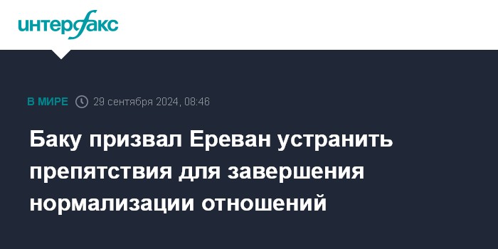 Баку призвал Ереван устранить препятствия для завершения нормализации отношений