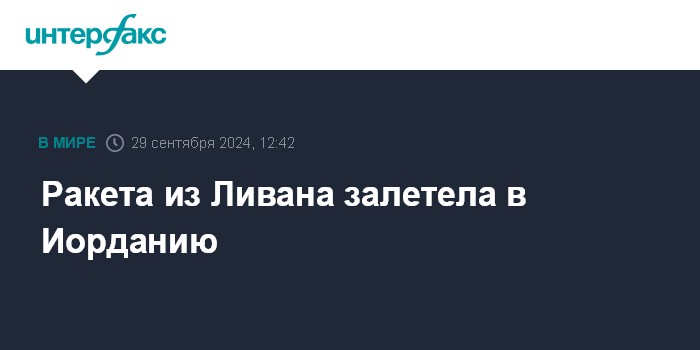 Москва. 29 сентября. INTERFAX.RU - Ракета, выпущенная с территории Ливана, разорвалась в Иордании, сообщает в воскресенье Associated Press.