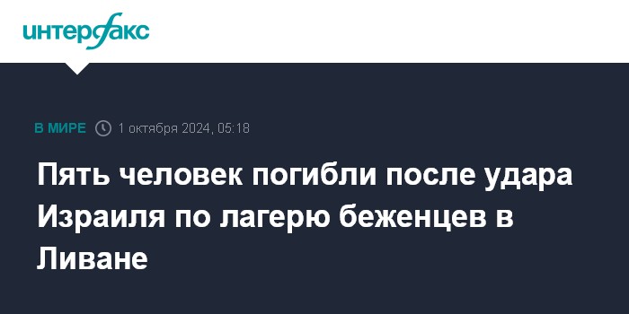 Москва. 1 октября. INTERFAX.RU - По меньшей мере пять человек погибли в результате израильского удара по лагерю палестинских беженцев Айн-аль-Хильва недалеко от города Сидон на юге Ливана рано утром во вторник, сообщает Al Mayadeen.