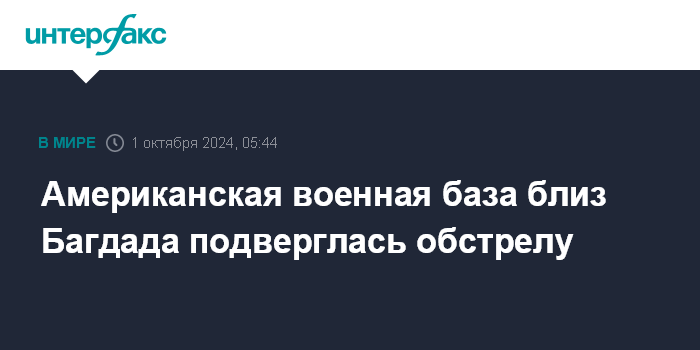 Москва. 1 октября. INTERFAX.RU - Военная база США Виктория, расположенная недалеко от международного аэропорта Багдада в Ираке, подверглась обстрелу, сообщает телеканал Al Mayadeen.