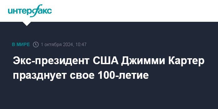 Москва. 1 октября. INTERFAX.RU - Джимми Картеру, 39-му президенту США, во вторник исполняется 100 лет; он первый глава американского государства, который смог достигнуть столь почтенного возраста.