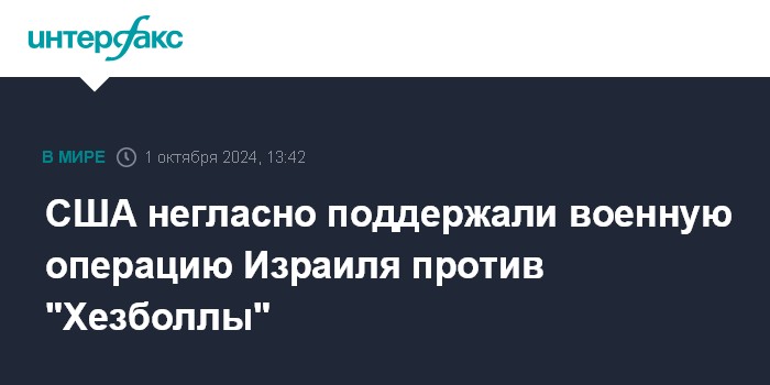 Москва. 1 октября. INTERFAX.RU - Высокопоставленные представители Белого дома в частном порядке сообщили Израилю, что США поддержат его решение начать военную операцию против ливанского шиитского движения "Хезболла", сообщило издание Politico, ссылаясь на американских чиновников.