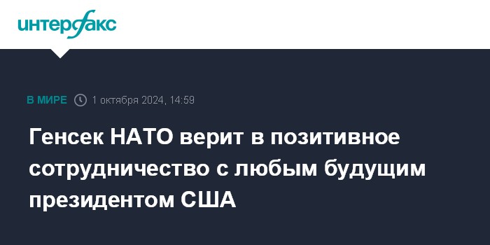 Генсек НАТО верит в позитивное сотрудничество с любым будущим президентом США