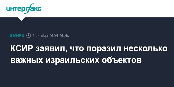 Москва. 1 октября. INTERFAX.RU - Корпус стражей исламской революции (КСИР) утверждает, что среди объектов, которые поразили иранские ракеты, были военная база и газовые платформы в Средиземном море.
