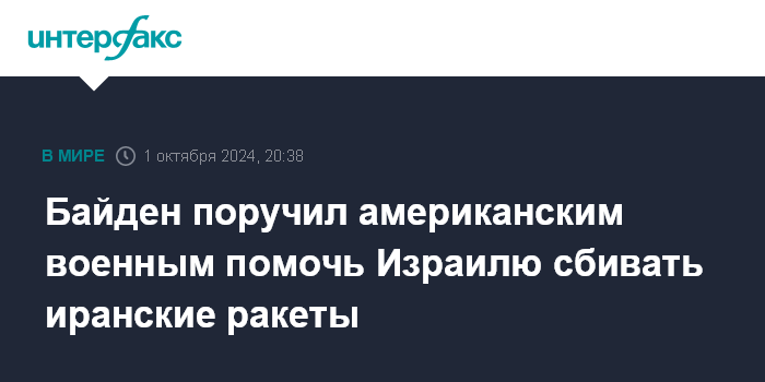 "Президент Байден поручил военным США помочь израильским силам отразить иранские атаки и сбивать ракеты, которые летят в направлении Израиля", - говорится в сообщении.
