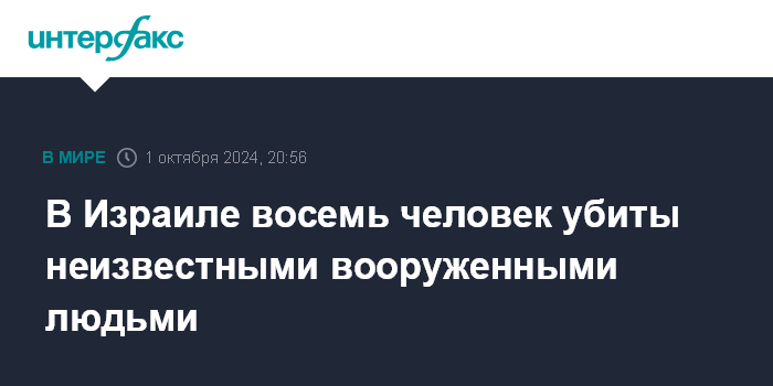 В Израиле восемь человек убиты неизвестными вооруженными людьми