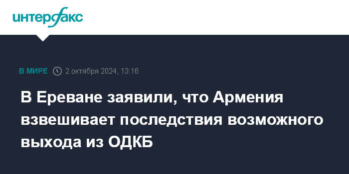 В Ереване заявили, что Армения взвешивает последствия возможного выхода из ОДКБ