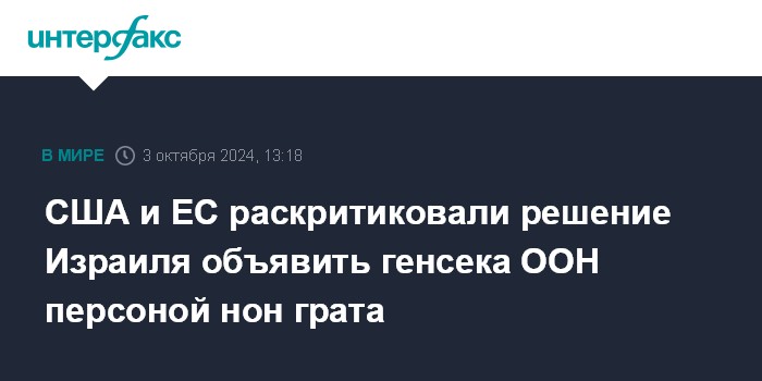 США и ЕС раскритиковали решение Израиля объявить генсека ООН персоной нон грата