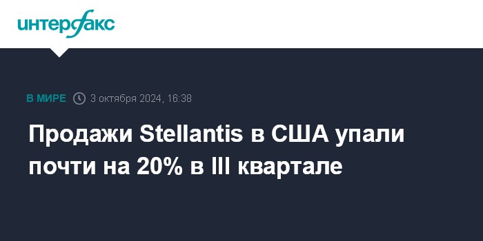 Продажи Stellantis в США упали почти на 20% в III квартале