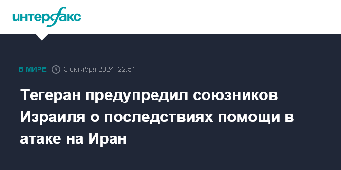 Тегеран предупредил союзников Израиля о последствиях помощи в атаке на Иран