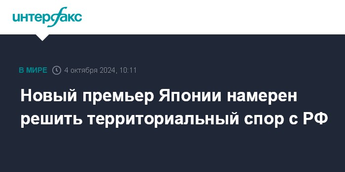 Москва. 4 октября. INTERFAX.RU - Новый премьер Японии Сигэру Исиба, выступая в пятницу с программной речью в парламенте, заявил, что хочет урегулировать территориальный спор с Россией.