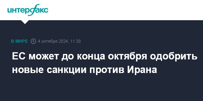 ЕС может до конца октября одобрить новые санкции против Ирана