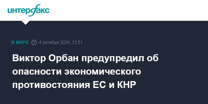 Москва. 4 октября. INTERFAX.RU - Политика ЕС в отношении КНР грозит спровоцировать экономическое противостояние с этой страной, заявил премьер-министр Венгрии Виктор Орбан.