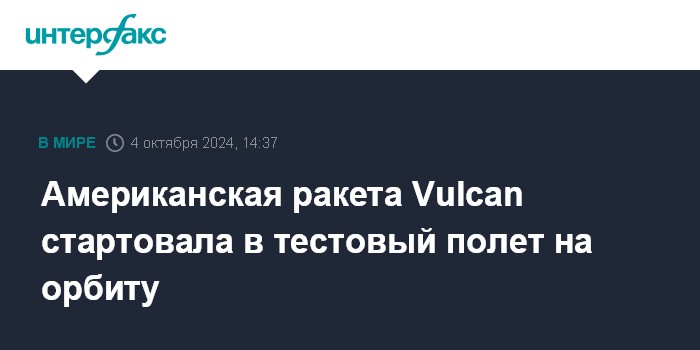 Москва. 4 октября. INTERFAX.RU - Американская ракета-носитель Vulcan тяжелого класса в пятницу стартовала на орбиту в рамках тестового полета, сообщила компания-разработчик United Launch Alliance (ULA).