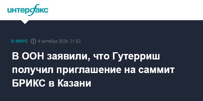 В ООН заявили, что Гутерриш получил приглашение на саммит БРИКС в Казани