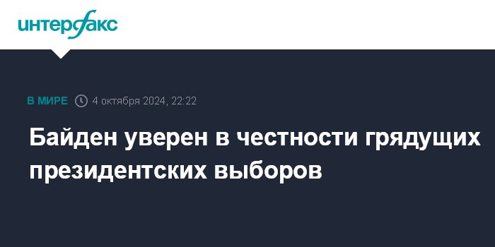 Москва. 4 октября. INTERFAX.RU - Президент США Джо Байден не сомневается, что президентские выборы в США в ноябре пройдут честно, однако риторика экс-президента и кандидата от республиканцев Дональда Трампа вызывает у него опасения.