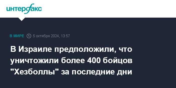 В Израиле предположили, что уничтожили более 400 бойцов "Хезболлы" за последние дни