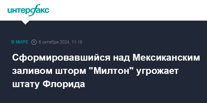 Сформировавшийся над Мексиканским заливом шторм "Милтон" угрожает штату Флорида