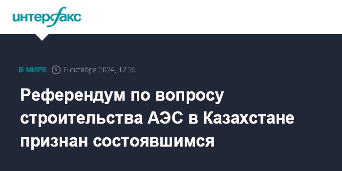 Референдум по вопросу строительства АЭС в Казахстане признан состоявшимся