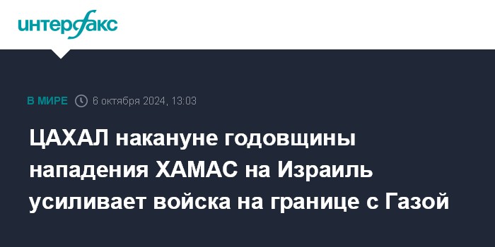 ЦАХАЛ накануне годовщины нападения ХАМАС на Израиль усиливает войска на границе с Газой