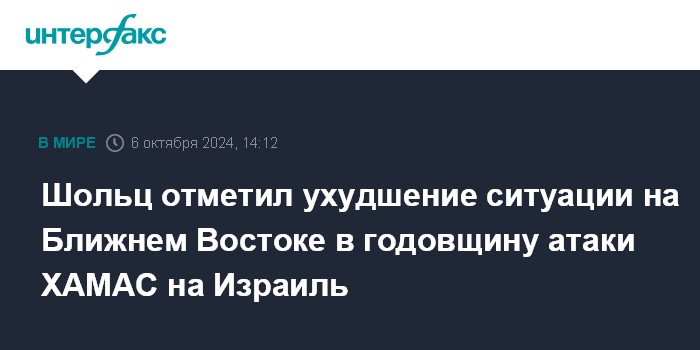 Шольц отметил ухудшение ситуации на Ближнем Востоке в годовщину атаки ХАМАС на Израиль