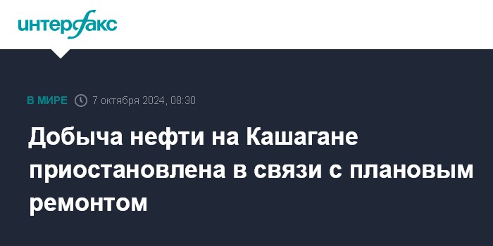 Добыча нефти на Кашагане приостановлена в связи с плановым ремонтом
