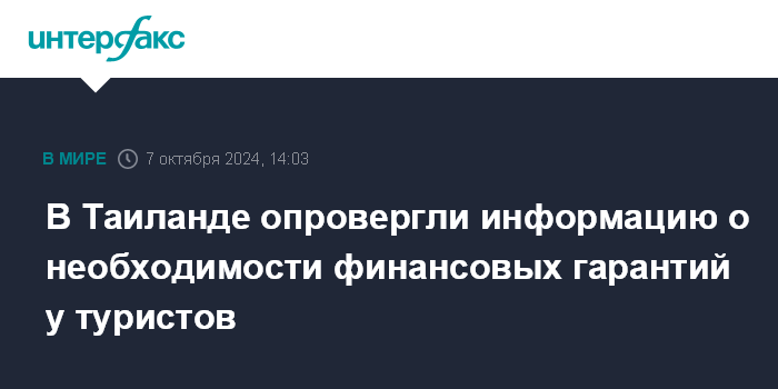 В Таиланде опровергли информацию о необходимости финансовых гарантий у туристов