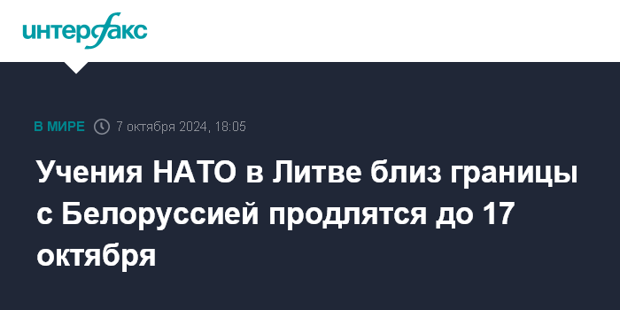 "7 октября начинаются международные учения Gelezinis Vilkas 2024-II. До 17 октября учения будут проходить на полигоне генерала Сильвестра Жукаускаса (расположен в городе Пабраде, в 15 км от границы с Белоруссией - ИФ), в них примут участие более 3 200 литовских и союзных солдат с 700 единицами военной техники", - говорится в сообщении.