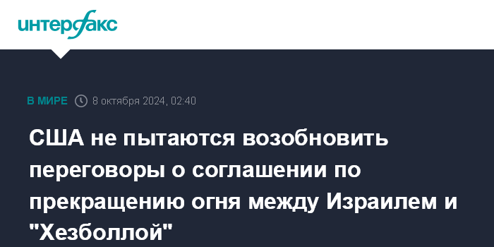 США не пытаются возобновить переговоры о соглашении по прекращению огня между Израилем и "Хезболлой"