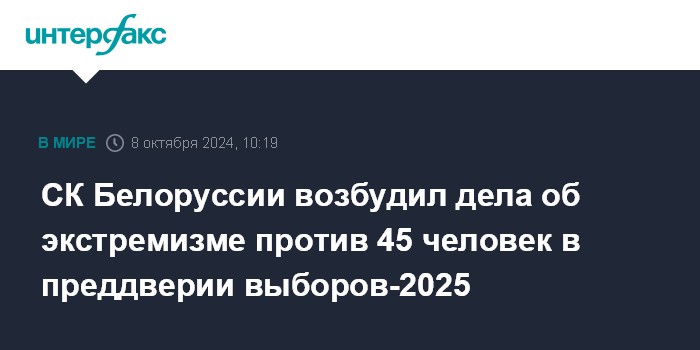 СК Белоруссии возбудил дела об экстремизме против 45 человек в преддверии выборов-2025