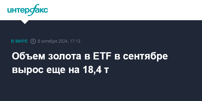 Объем золота в ETF в сентябре вырос еще на 18,4 т
